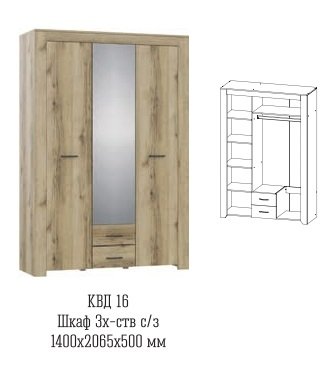 Трехстворчатый шкаф с зеркалом Квадро-16