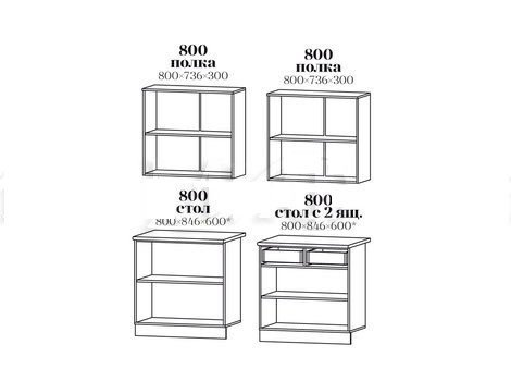 Высота верхних шкафов (мм) | 736 |