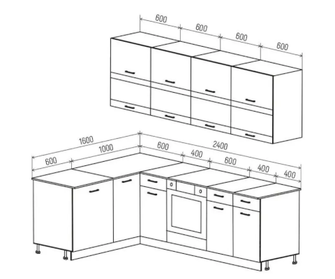 Угловой кухонный гарнитур Техно 1,6х2,4 м Компоновка 4 (Миф)