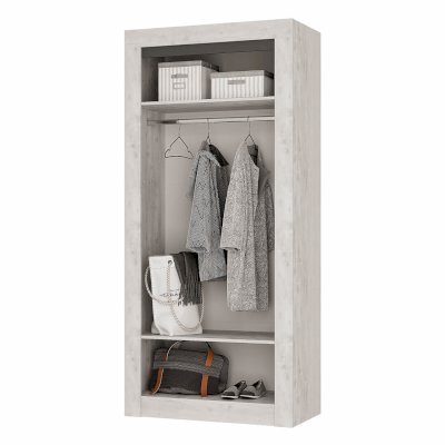 - широкая кровать и коллекция модулей для хранения одежды, аксессуаров и постельных принадлежностей.