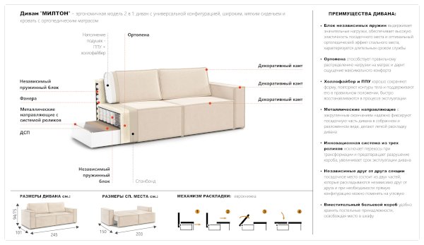 Диван Милтон (Империал) продается в интернет-магазине mebel-online-nizhnevartovsk.ru по цене 60 770 руб. Есть доставка по Нижневартовску и Ханты-Мансийскому автономному округу. Возможность подъема на этаж и сборки уточняйте у менеджера по телефону 8(800)505-27-11.